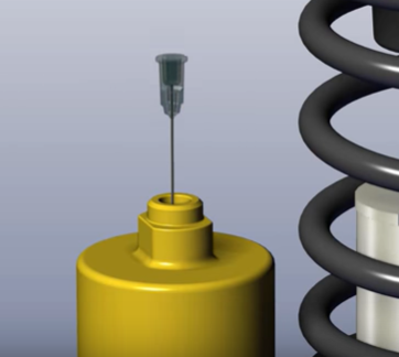 ОБЕРЕЖНО пробиваючи медичною голкою гумову прокладку, спустити весь закачаний газ із резервуара. |