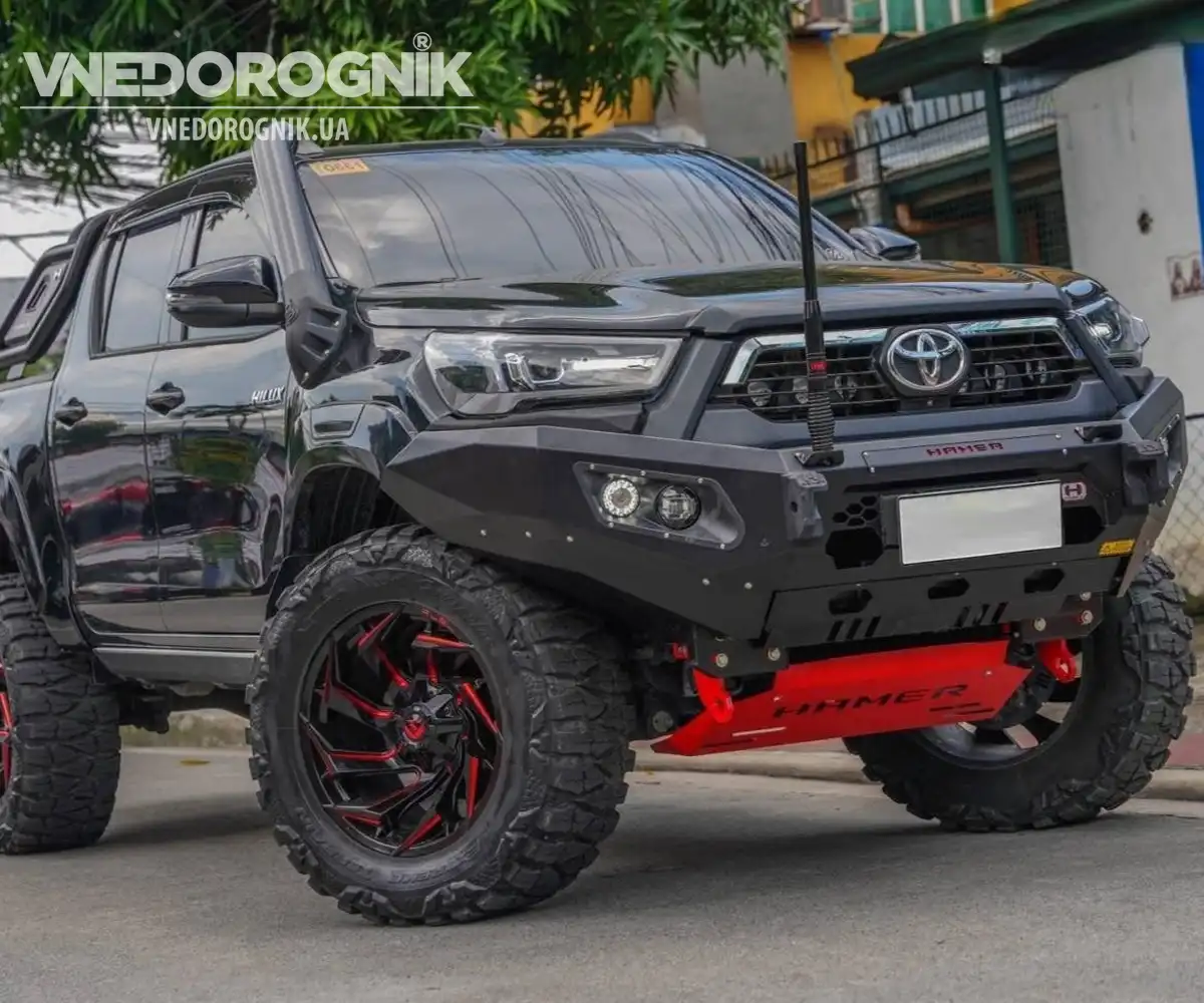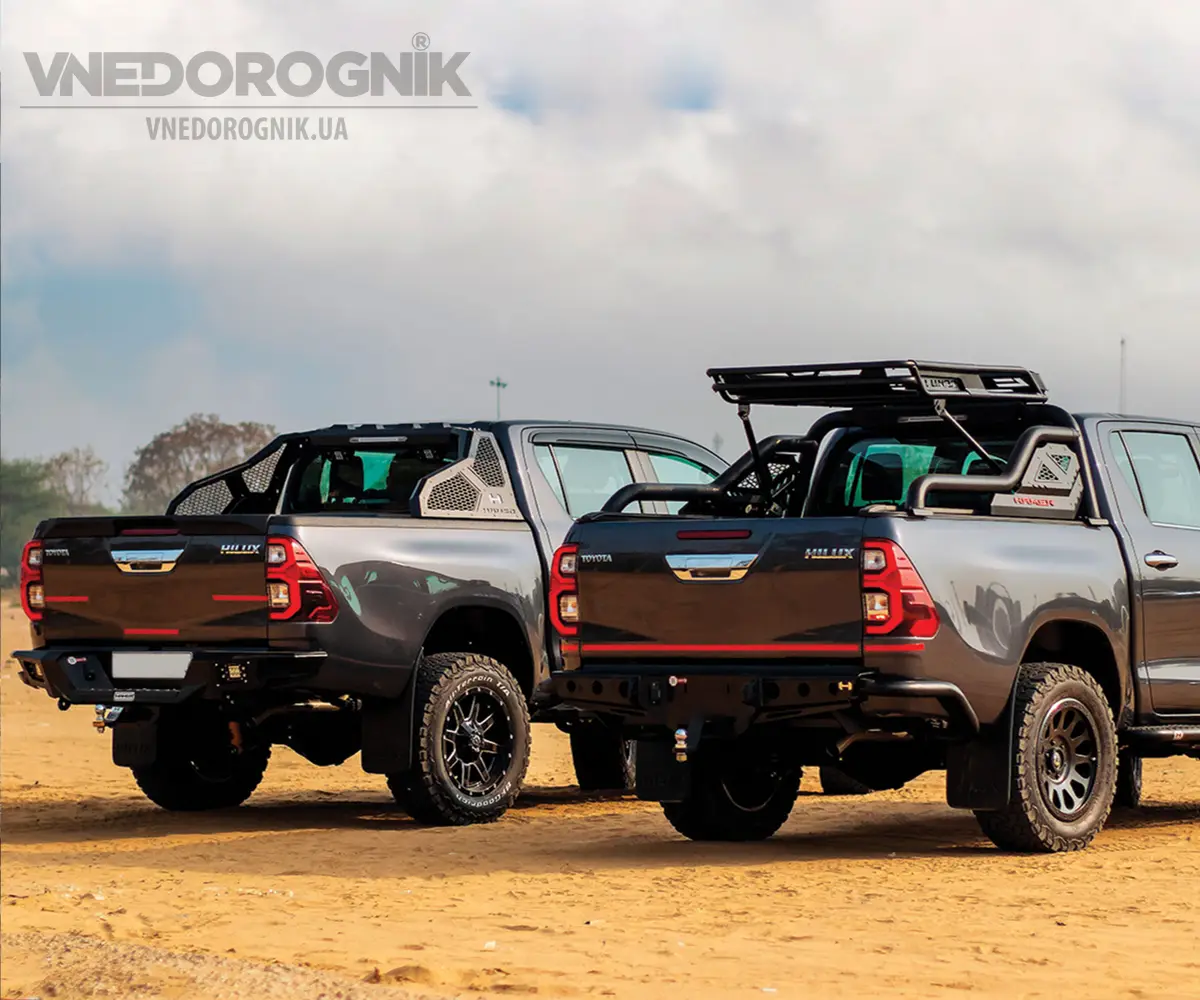 Для обеспечения защиты боковой части пикапа, можно рассмотреть установку подножек или силовых порогов. Производитель AQM4WD предлагает широкий выбор боковых труб и подножек для Тойота Хайлюкс из стали, как со сдержанным, так и с ярко выраженным дизайном. Турецкий производитель за умеренную цену предоставляет возможность улучшить комфорт использования пикапа (особенно с после лифта подвески) и несколько защитить боковые части автомобиля от дорогостоящего ремонта.