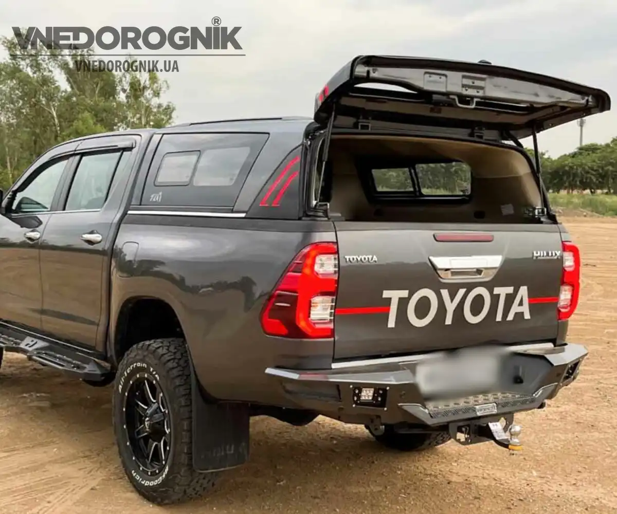 Дополнительными преимуществами является наличие повторителя стоп-сигнала и газовых упоров для стекла, что обеспечивает комфорт и безопасность во время эксплуатации. И товары этого бренда доступны по цене, делая эти кунги привлекательным вариантом для владельцев Toyota Hilux, которые ищут качественное и функциональное оборудование для своего автомобиля.