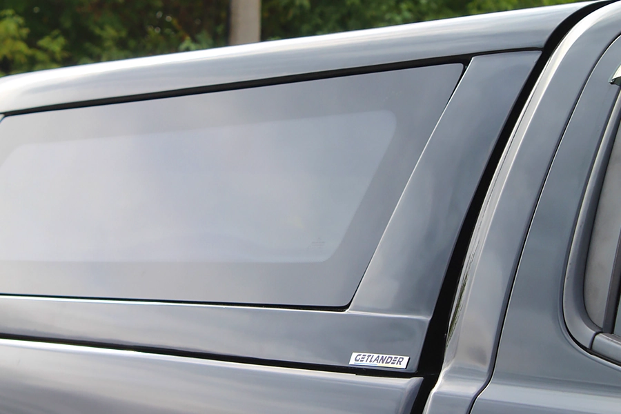 Внутренняя отделка карпетом придаёт кузову аккуратный вид и дополнительно защищает груз от повреждений. Тонированное закалённое стекло обеспечивает приватность, а плотное прилегание кунга к кузову пикапа эффективно защищает от пыли, воды и агрессивных погодных условий. Дополнительным преимуществом является спойлер с встроенным стоп-сигналом и внутренней LED-подсветкой — для удобства использования в тёмное время суток.